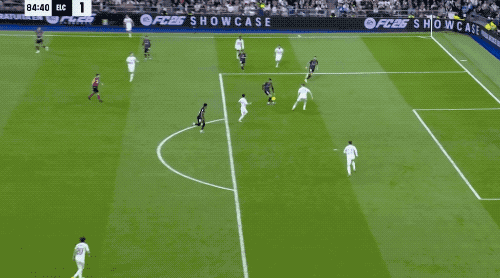 第89分钟,居莱尔上演令人拍案叫绝的后场吊射,为本场比赛画上完美句号。