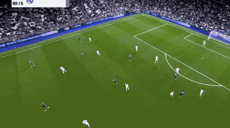 第89分钟,居莱尔上演令人拍案叫绝的后场吊射,为本场比赛画上完美句号。